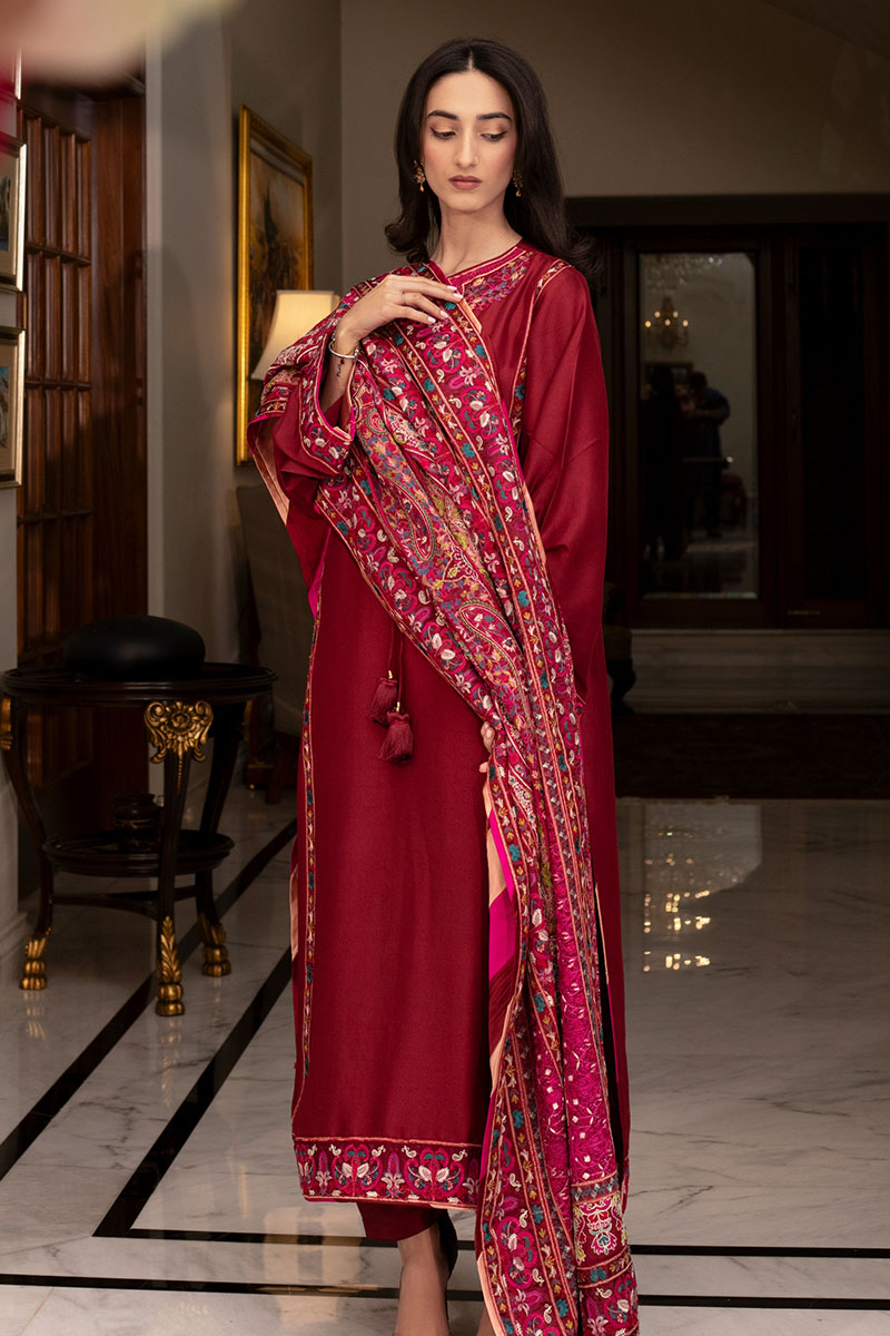 Delicate and elegant, this light weight chiffon shawl features intricate all-over embroidery. A perfect statement piece to elevate any look, from festive to formal.