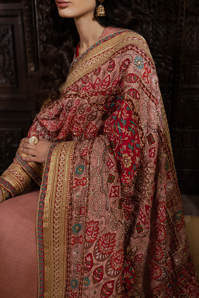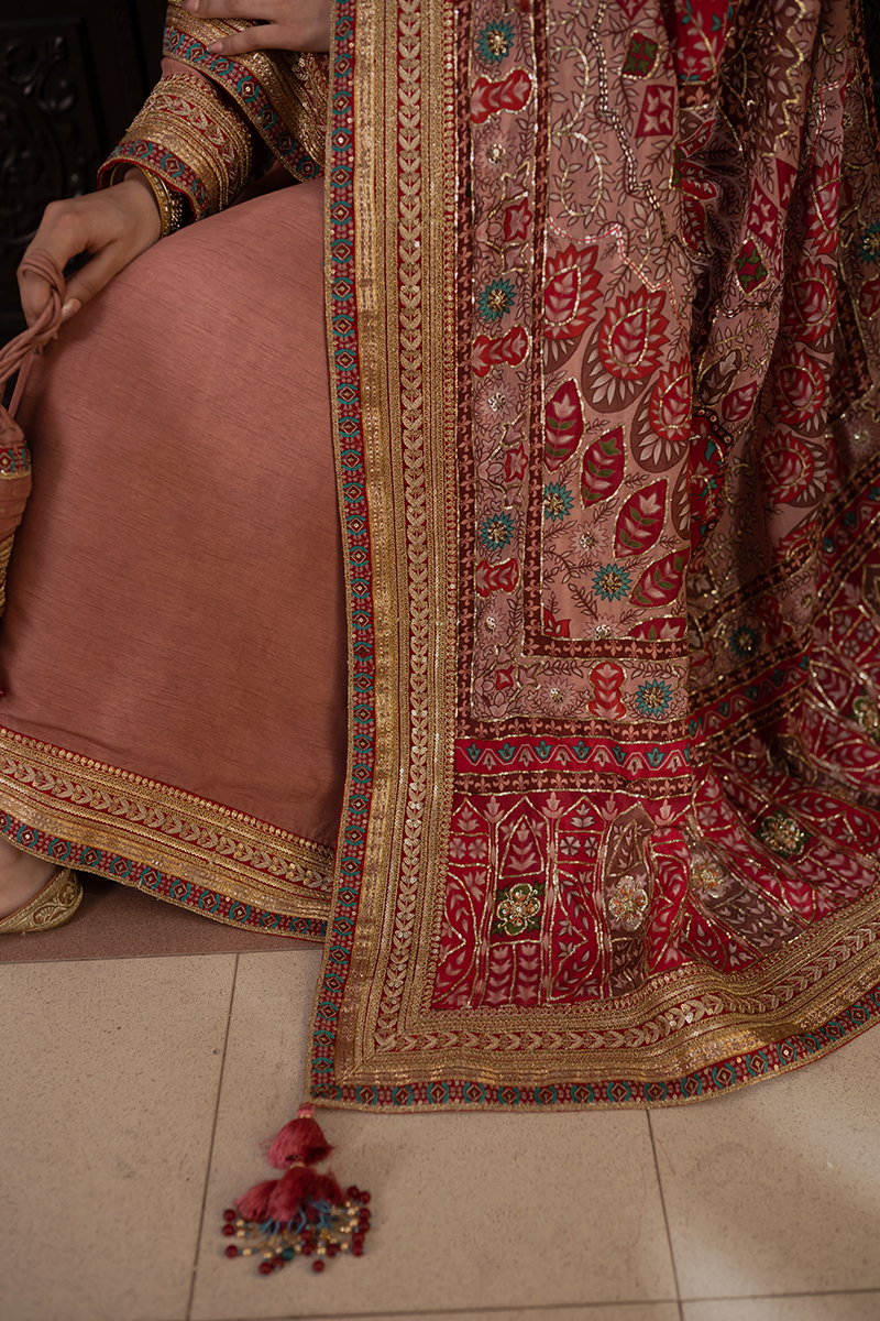 An ultra-glam raw silk suit featuring decadent embroidered and embellished tilla borders that command attention. The luxurious craftsmanship and radiant finish create a couture-inspired look that feels both elegant and powerful. Designed for moments where you want to shine effortlessly.